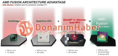 Teoretycznie więc wszystko jest w normie, bowiem wydajność procesora porównywalna jest z 3- lub 4-rdzeniowymi układami AMD o nieco wyższym taktowaniu. Osiągi systemu graficznego są podobne do uzyskanych przez zewnętrzne karty Radeon, wyposażone w procesory graficzne mające 320 – 400 procesorów strumieniowych. Zintegrowany układ graficzny wydajniejszych układów Llano, także ma mieć tyle procesorów strumieniowych. AMD chwali się jednak, że jego układy APU charakteryzować się będą współczynnikiem TDP na poziomie 25 W, 35 W lub 45 W, a więc zdecydowanie niższym niż dotychczasowy procesor i karta graficzna razem wzięte.