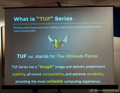 Po zaznajomieniu się z nowymi technologiami, które spotkamy w płytach głównych z serii P8, przyszła pora na prezentację płyt głównych z serii Republic of Gamers oraz serii TUF (The Ultimate Force).