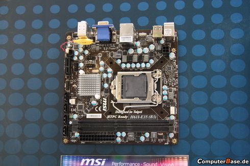 Na stoisku MSI pojawiły się trzy płyty główne z chipsetem H61 - pierwsza z nich o oznaczeniu H61I-E35 ma format miniITX, natomiast dwie kolejne H61M-E33 i H61MU-E35 to konstrukcje rozmiaru mATX. Wszystkie płyty mają po dwa banki pamięci DDR3. Dla kart rozszerzeń udostępniono jeden port PCI-Express x1 na płycie miniITX, a w większych modelach do dyspozycji mamy jeden port PCI-Express x16, dwa PCI-Express x1 oraz jeden PCI.