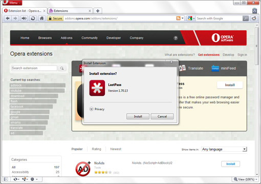 A rozszerzenia? Jakoś nie są mi potrzebna. Jak dla mnie Opera ma wszystko co jest mi potrzebne a nawet więcej.