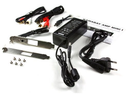 Kama Bay AMP mini to niewielki wzmacniacz klasy D oferujący możliwość montażu w zatoce 3,5 cala w komputerze stacjonarnym. Wewnątrz aluminiowej obudowy o wymiarach 105 x 33,5 x 155 mm umieszczono cyfrowy wzmacniacz YAMAHA YDA 138 (D-3) oferujący wysoką jakość dźwięku. Na tyle obudowy znajdują się pozłacane 2 wejścia RCA i 2 wyjścia głośnikowe, natomiast na panelu frontowym obok pokrętła znajdziemy wyjście słuchawkowe. Wzmacniacz sprzedawany jest wraz z zestawem akcesoriów montażowych w cenie około 37 euro.