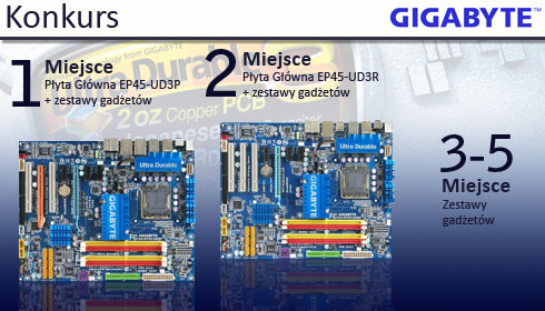 Mamy przyjemność ogłosić wyniki konkursu Gigabyte, w którym do wygrania były atrakcyjne nagrody: Płyty główne firmy Gigabyte oraz zestawy gadżetów. Niezmiernie miło nam poinformować, że jury wyłoniło następujących zwycięzców: