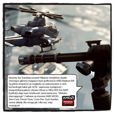 Do wygrania: Co należy zrobić? Uruchom swoją wyobraźnię i stwórz fajną historię opowiadającą o technologiach firmy AMD. Liczy się pomysłowość! Do opowiedzenia swojej historii użyj co najmniej 6 obrazków. Dodatkowo odpowiedz na 2 pytania. Pozostaje Ci już tylko trzymać kciuki. Konkurs trwa do 6 stycznia. Życzymy powodzenia!Wyniki konkursu: Stwórz swoją historię na polu bitwy z BF4, wygraj super nagrody od AMD