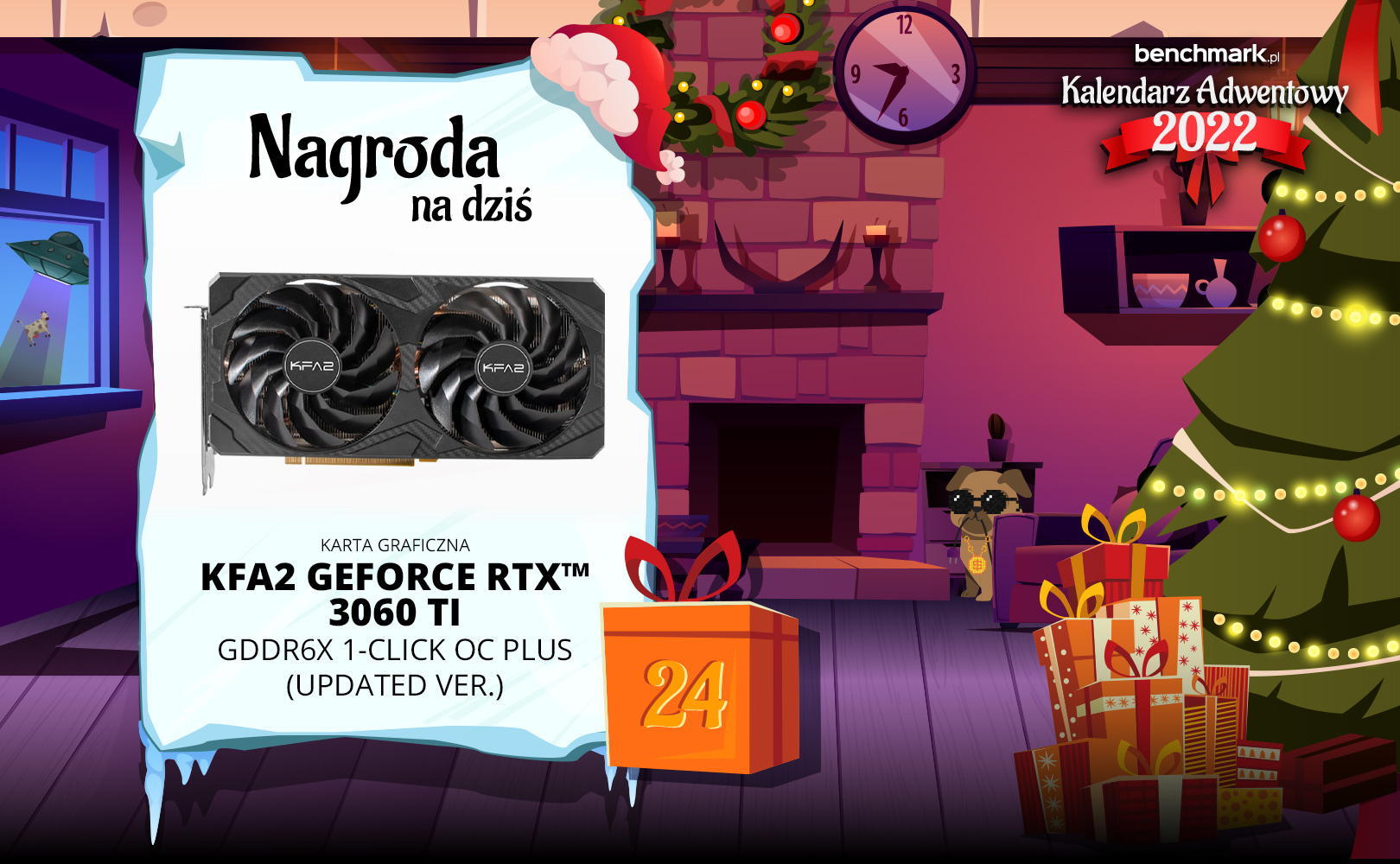 To już ostatnie okienko w Kalendarzu adwentowym na benchmark.pl – rozdajemy ostatni prezent od Świętego. I to nie byle jaki, bo mamy dla Was świetną kartę graficzną KFA2. Wydajna jak Pani Mikołajowa lepiąca uszka, cicha jak renifery ciągnące sanie nad dachem i z dwoma wentylatorami, które pracują tak dobrze, jak elfy w fabryce zabawek liczące na podwyżkę. Marzysz o takim egzemplarzu pod choinką? Weź udział w konkursie! Powodzenia! To już koniec tegorocznej edycji Kalendarza adwentowego – pora na karpia, sos grzybowy i kolejny kawałek serniczka. Wesołych Świąt!