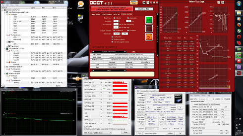 Po O/C CPU, jego temperatura w stresie wzrosła o 10*C względem standardowego taktowania, co ciekawe, aby osiągnąć stabilny zegar 3,8 GHz wystarczy podbić napięcie zasilające o zaledwie 0,025 V. Daje to wartość 1,4 V. Wydawałoby się, że jest ona niewielka i nie powinna aż tak podnosić temperatury procesora. Jednak dodatkowe 600 MHz, w przypadku Phenoma II x4 955, najwidoczniej robi sporą różnicę.