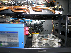 W trakcie testów obudowa była doposażona w dwa wentylatory: