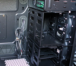 Obudowa umożliwia montaż do 7 tradycyjnych dysków 3,5 cala, które montowane są w specjalnym koszyku. Dodatkowo jest on dzielony na dwie części, co pozwala odwrócić część dysków wzdłuż, lub wszerz obudowy, ewentualnie zdemontować koszyk całkowicie, zyskując w ten sposób więcej miejsca dla długich kart graficznych.