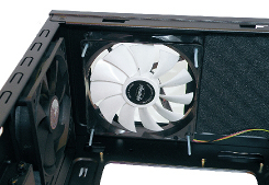 Pod dachem obudowy znalazło się miejsce dla dodatkowego wentylatora. Można tu zamontować jednostki w rozmiarze 120 i 140 milimetrów.