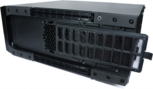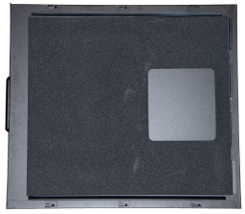 Umieszczono tu również duży filtr przeciwkurzowy, który osłania dwa otwory wentylacyjne. Filtr składa się z plastikowej ramki i drobnej metalowej siateczki. Zaletą tego rozwiązania jest fakt, że do jego czyszczenia wystarczy strumień bieżącej wody. Wadą jest jego demontaż, który odbywa się od tyłu obudowy, aby go wyjąć trzeba obrócić ją o co najmniej 90*, co jest nieco kłopotliwe.