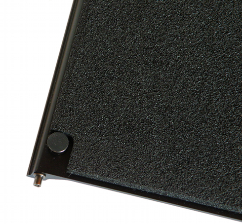 W każdym z czterech rogów drzwiczek znajduje się niewielki magnes przyciągający je do reszty frontu. Na ich rewersie jest przyklejona jedna z czterech mat wygłuszających. Ma ona 5 mm grubości i bardzo sprawnie blokuje przepływ chłodnego powietrza do wnętrza obudowy.
