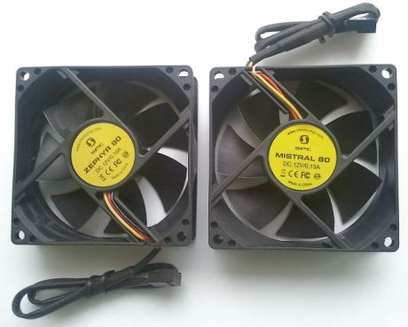 Główną różnicą pomiędzy konstrukcjami Zephyr 140 mm, a Mistral 140 mm prócz różnic w prędkości obrotowej jest wydajność. Różnica ta jest niewielka, ale zauważalna. Za cenę Zephyra otrzymamy produkt, który będzie w stanie wymusić lepszy obieg powietrza w obudowie. Temperatury w stanie spoczynku we wszystkich punktach pomiarowych różniły się o 1 stopień Celsjusza na korzyść wentylatora Mistral. Wentylatory umieszczone były w górnej części obudowy i nawiewały powietrze na chipset płyty głównej. Zephyr niestety nie obniżał temperatur w zauważalny sposób i temperatury były takie same jak w sytuacji bez wentylatorów.