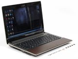 Samsungi zwykle cieszą oko designem a ich klawiatury zapewniają wysoki komfort pracy. Nie inaczej jest z modelem Q330, który waży niecałe 2 kilogramy. Srebrne, matowe wnętrze nie reaguje na odciski palców, również jego wydajność nie rozczarowuje – procesor Intel Core i3 M350 pozwala na wydajną pracę, a układ graficzny GeForce 310M przyda się amatorom starszych gier. | |