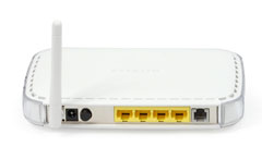 | Kompaktowy, nieodkręcana antena, dobra jakość wykonania Przyciski: Włącz/wyłącz, Reset Diody LED na przednim panelu: • Zasilanie, • Ethernet (1-4), • zabezpieczenia, • sieć bezprzewodowa, Internet | Porty: DSL, Ethernet (1-4), zasilanie Ma jedną zewnętrzną antenę. Nie obsługuje trybu N. Inne ciekawe cechy: • możliwość montażu na ścianie |